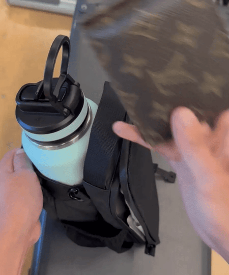 The Kinetic Gym Bag is designed to store your essential workout gear without the bulk of a large gym bag. You can comfortably fit items such as your phone, keys, wallet, earbuds, lifting straps, and a shaker bottle. The compact size keeps everything organised and within reach while you train.